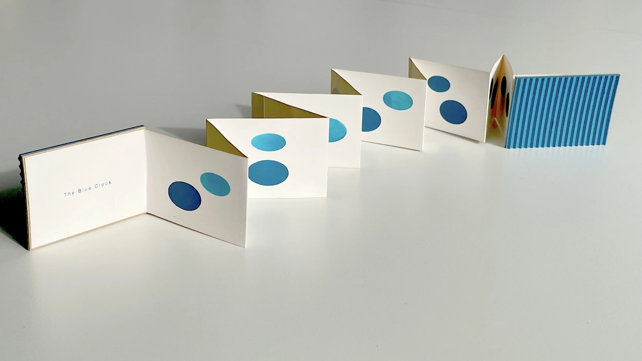 The Blue Clock is an edition of 10 leporellos printed in August of 1999. A pair of blue, corrugated, rubber mats are circumambulated, “tuning” the color of the monochrome circles.